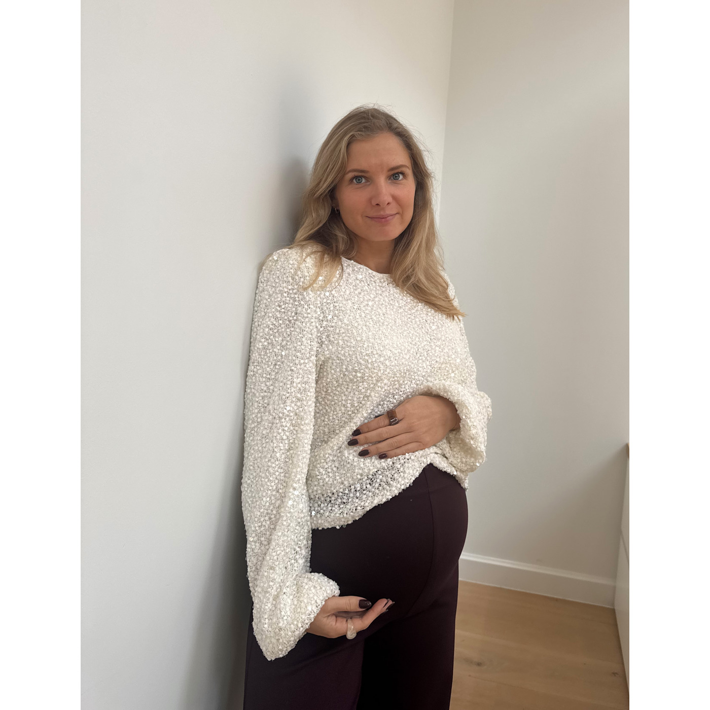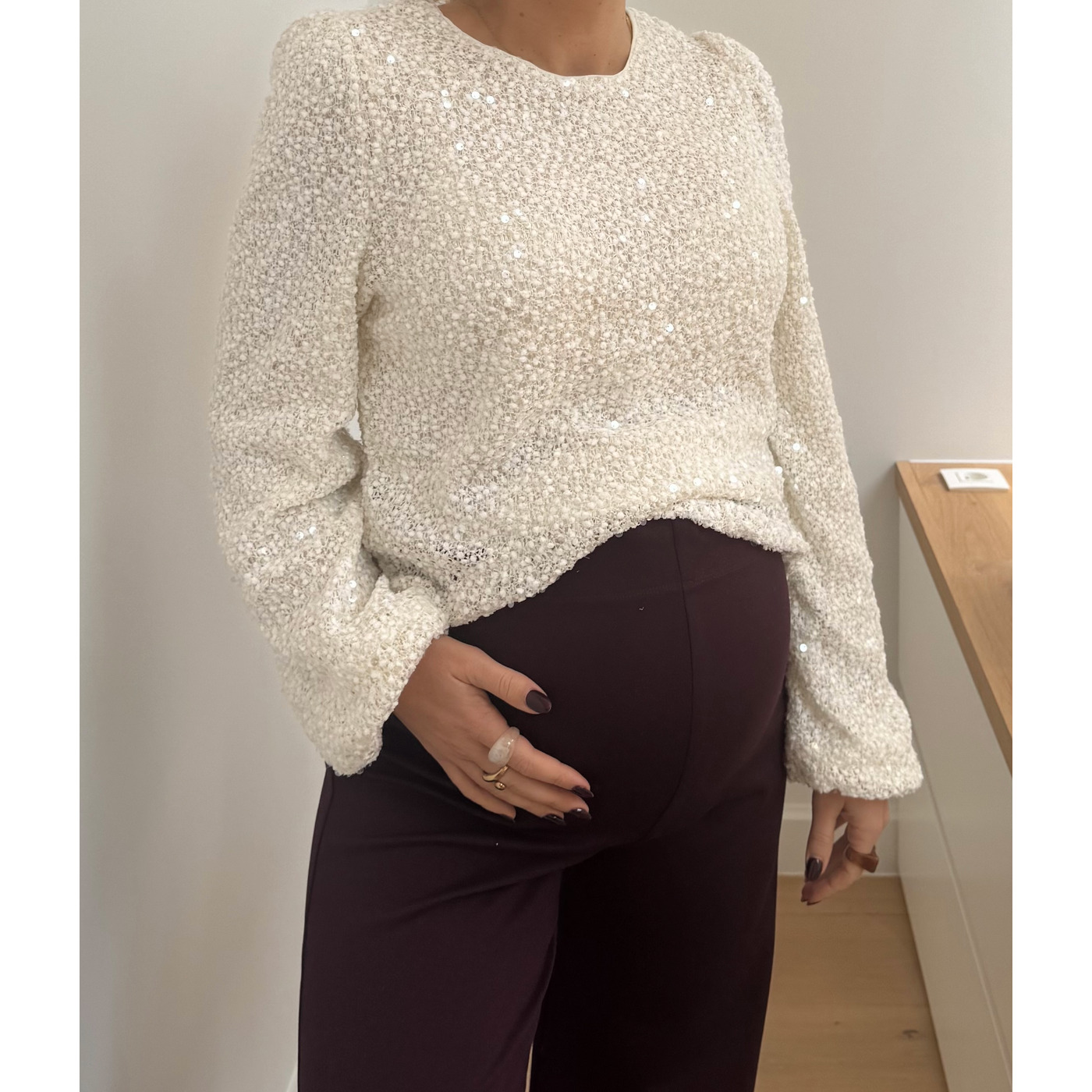 Combineer hem moeiteloos met een hoge taille broek of rok voor een elegante uitstraling. Ideaal voor zwangere vrouwen die zich stijlvol én comfortabel willen voelen.