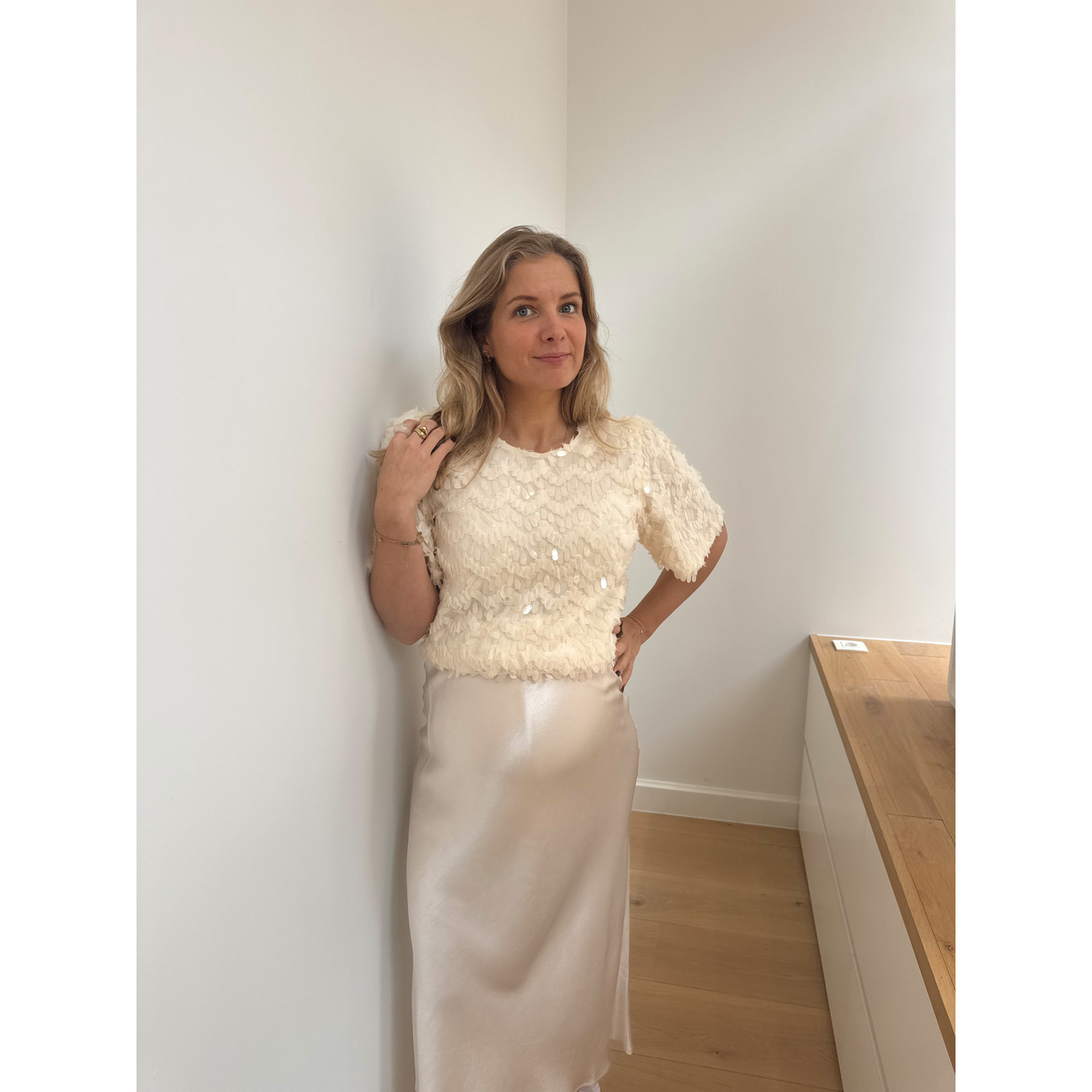 Dankzij de flatterende pasvorm combineer je het moeiteloos met een hoge taille rok of broek voor een stijlvolle, feestelijke look.