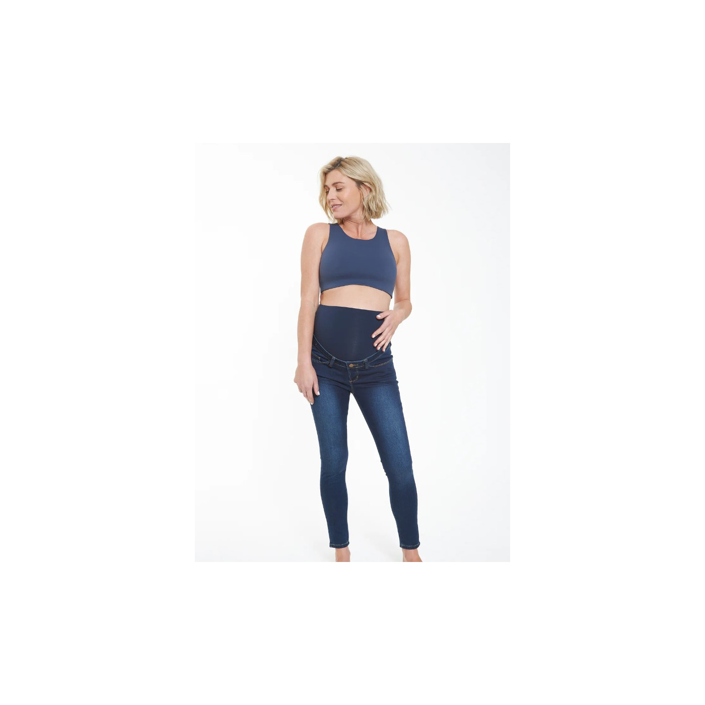 Skinny jeans met elastische tussenstukjes, zodat je broek meegroeit met je buikje. De broek komt tot op enkelhoogte.