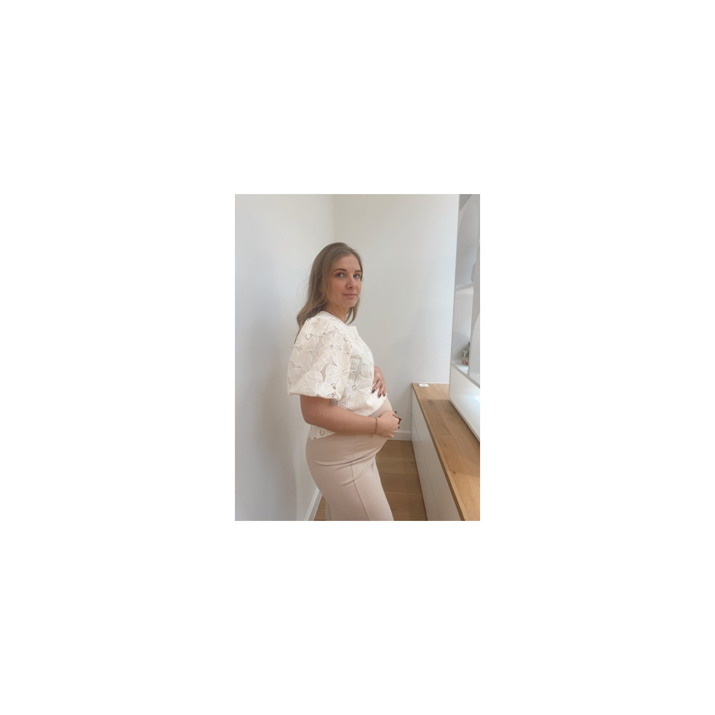 Feestelijke korte top, geschikt om te dragen op een hoge taille broek of hoge taille rok.