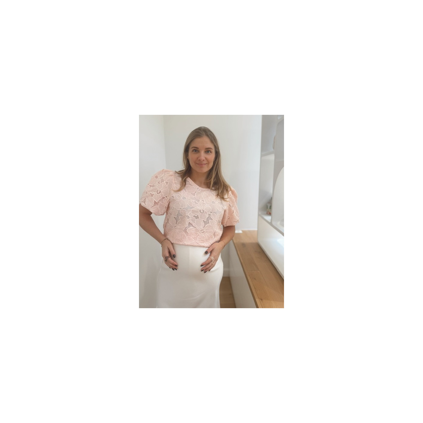 Feestelijke korte top, geschikt om te dragen op een hoge taille broek of hoge taille rok.