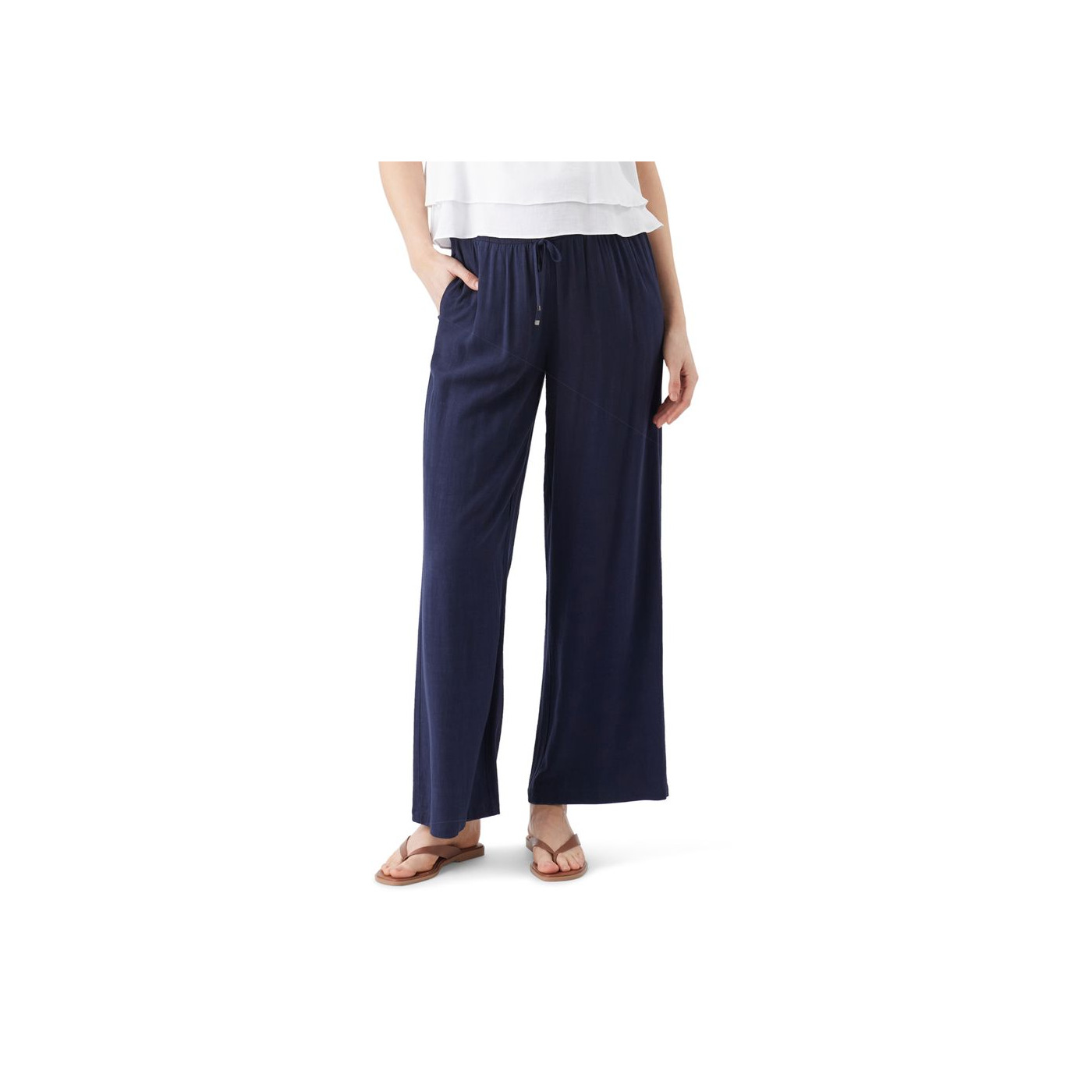Linen Blend Wide Pants zijn luchtige, comfortabele wijde broek met smocked taille en verstelbare drawstring.