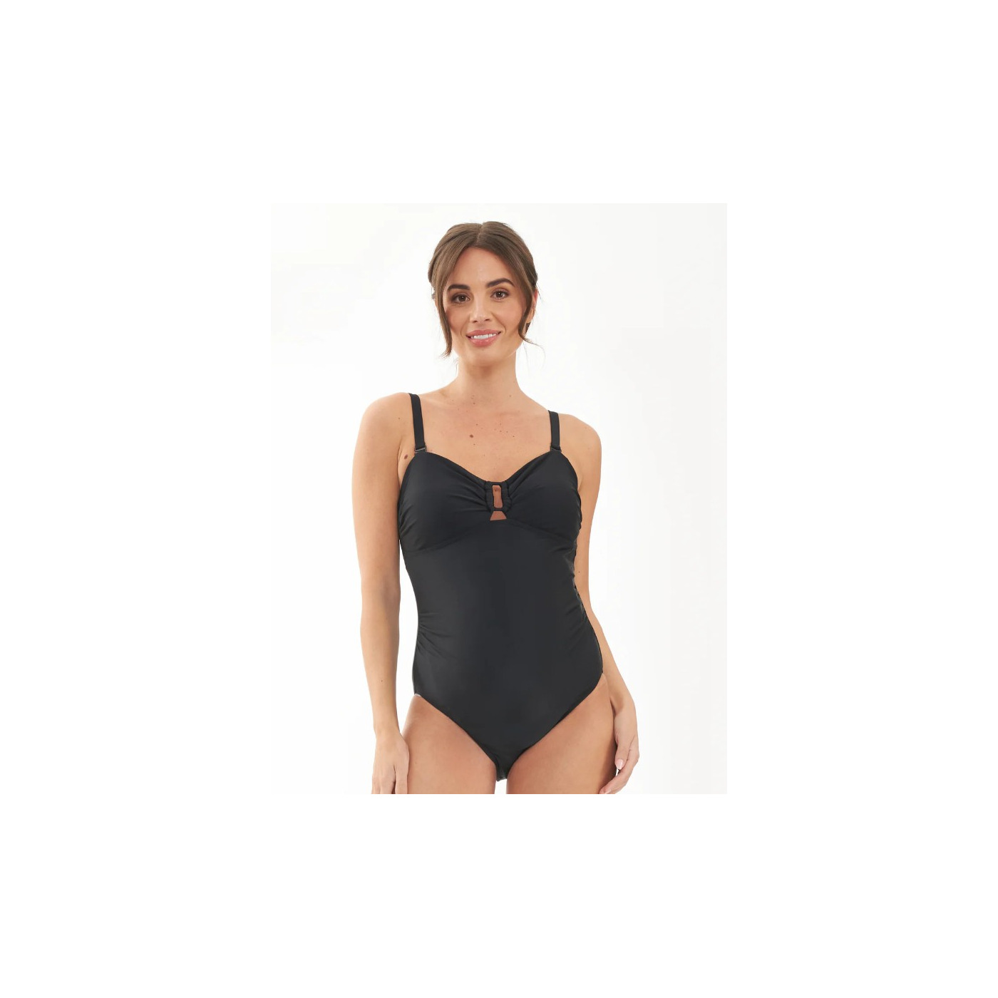 Het badpak heeft een flatterende halslijn, een elegante gesp aan de voorkant en is gemaakt van comfortabel stretchmateriaal voor een perfecte pasvorm.