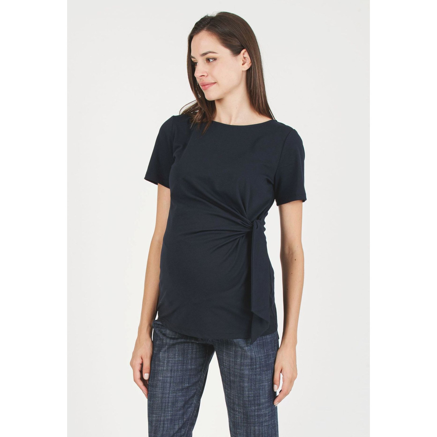 Dit praktische en moderne zwangerschaps-T-shirt is gemaakt van superstretch katoenjersey en valt dankzij het zijstrikje mooi om je buik, waardoor je groeiende bump subtiel wordt benadrukt.