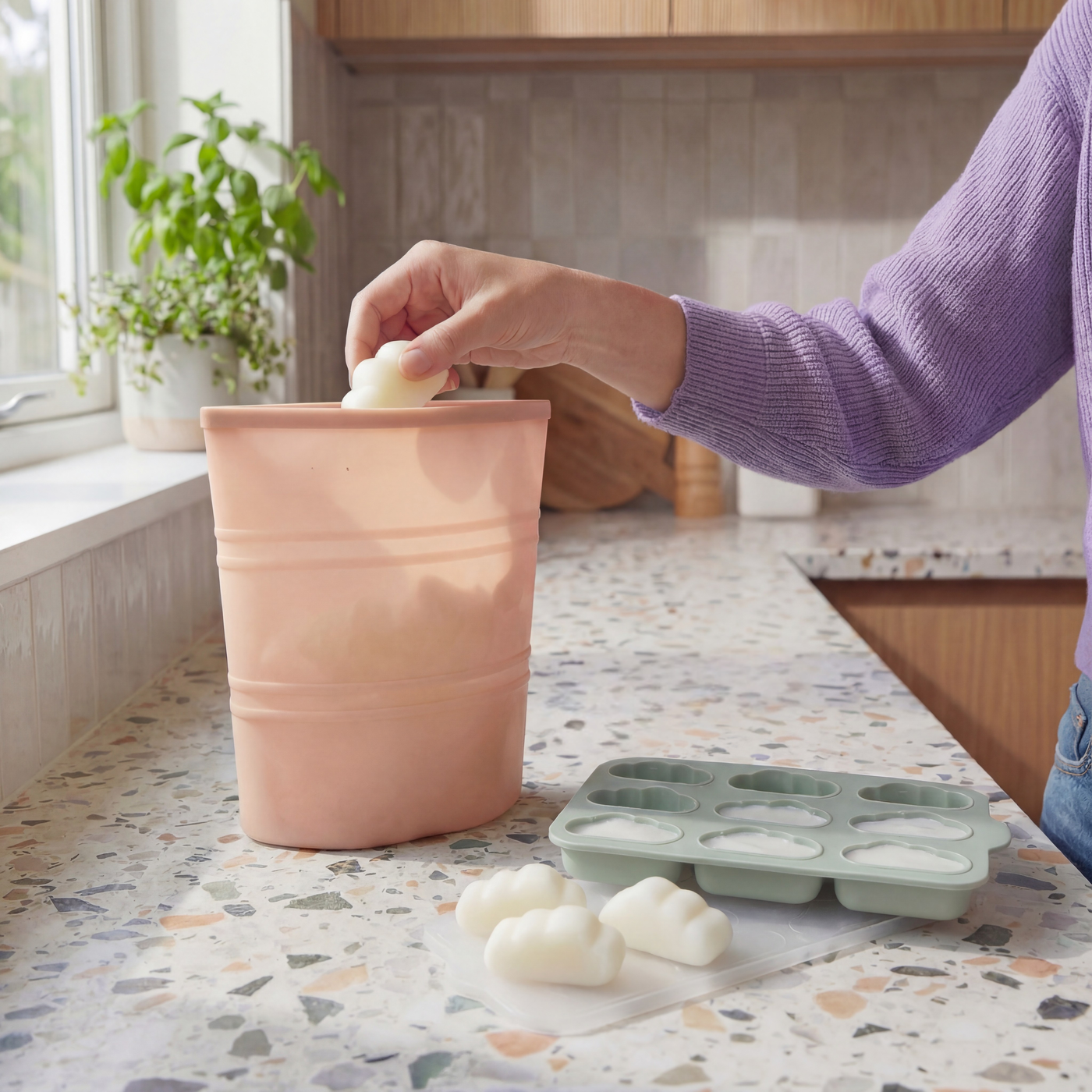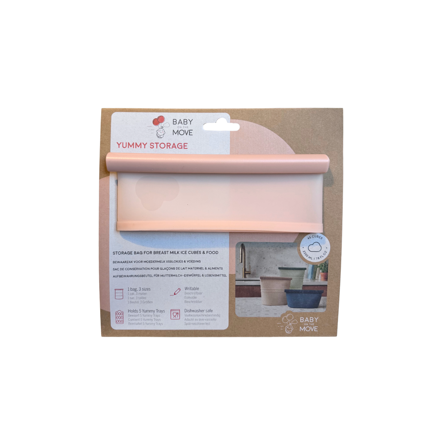 De Yummy Storage zak maakt het bewaren van moedermelk eenvoudig en overzichtelijk. Met 3 verstelbare sluitniveaus groeit hij mee met je voorraad en blijft je vriezer netjes en hygiënisch. Perfect voor moedermelk, puree, sauzen en meer. Plasticvrij, afvalvrij en herbruikbaar voor het dagelijkse gezinsleven.