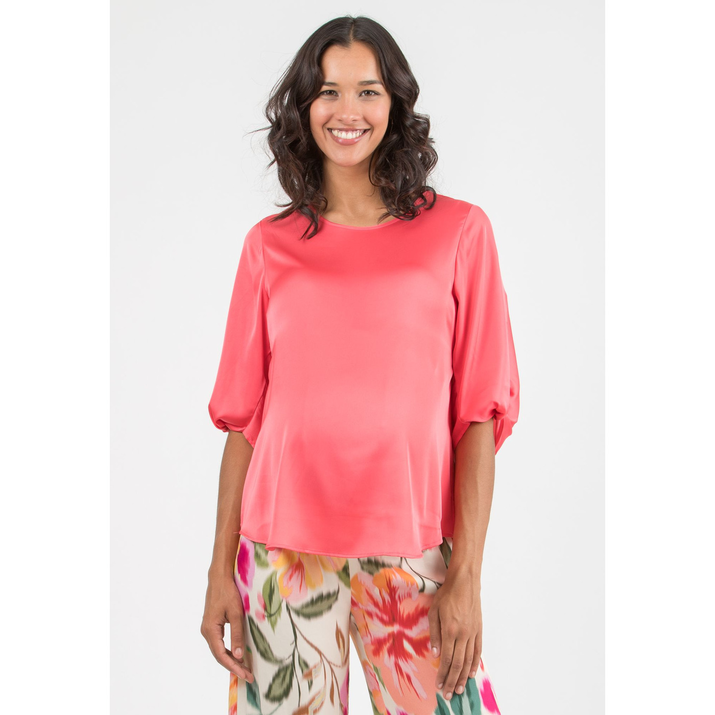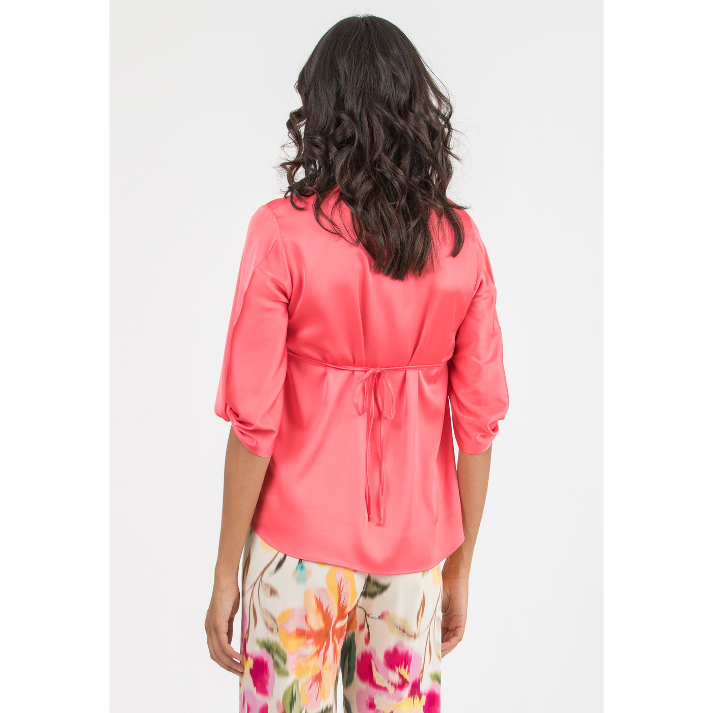 Deze lichte satijnen blouse (100% polyester) is perfect voor tijdens en na de zwangerschap! Met het bijpassend lintje kan je jouw buikje extra accentueren!