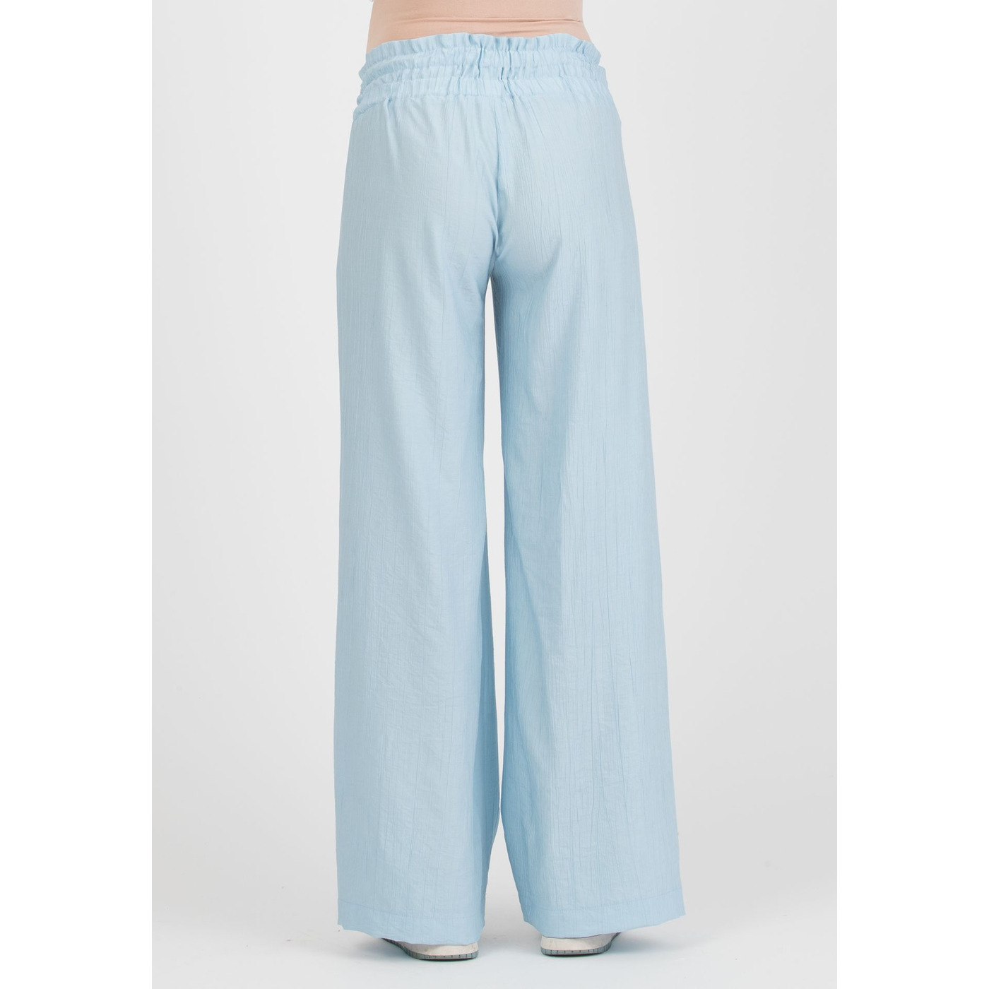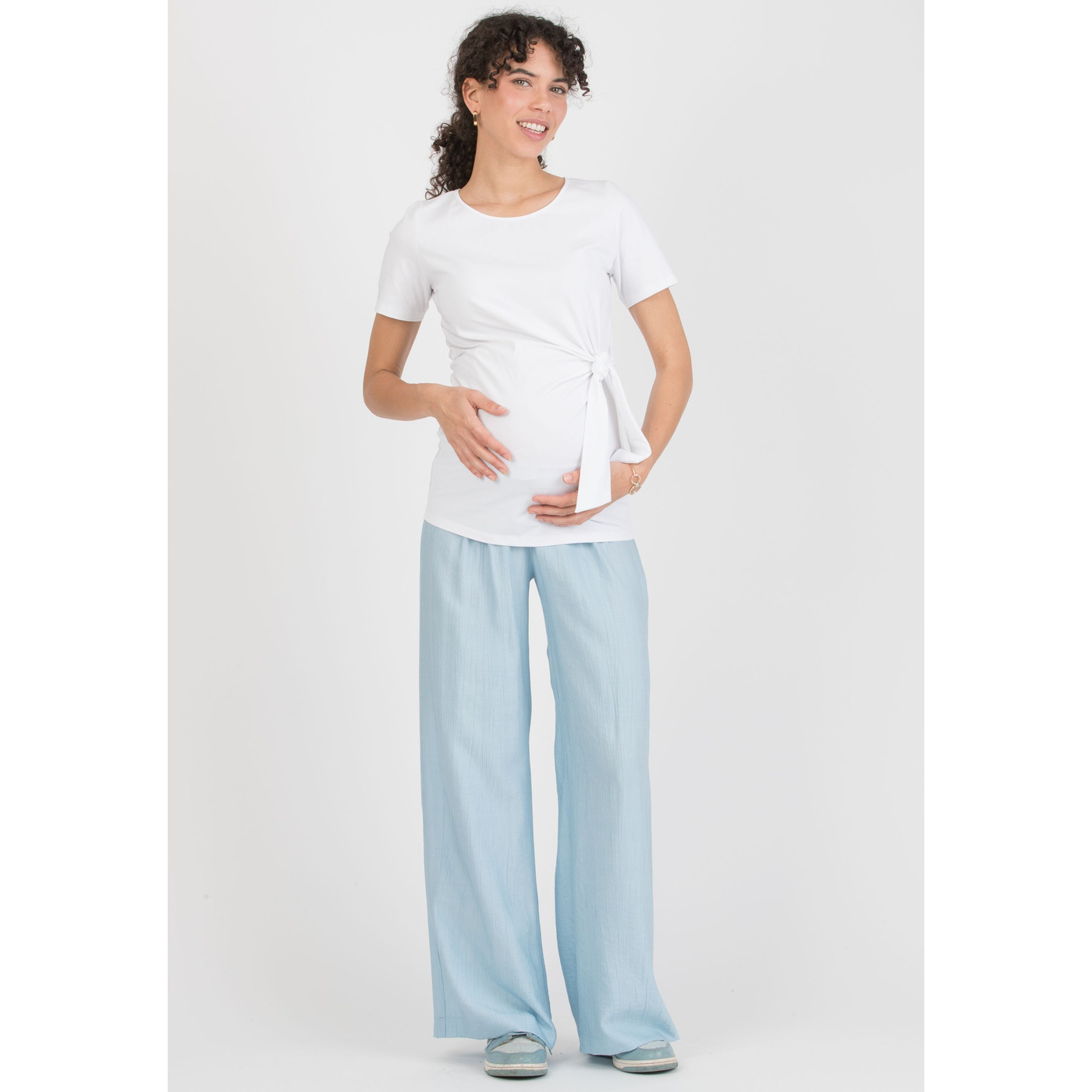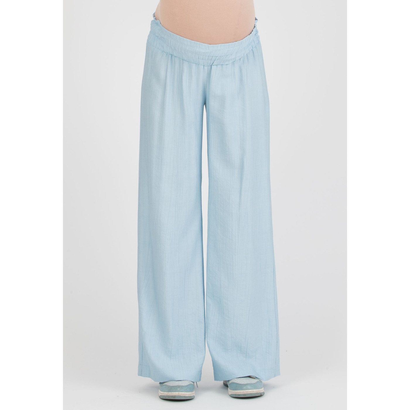Deze lichtblauwe broek (100% viscose) met een aanpasbare broekband is perfect voor tijdens EN na de zwangerschap!