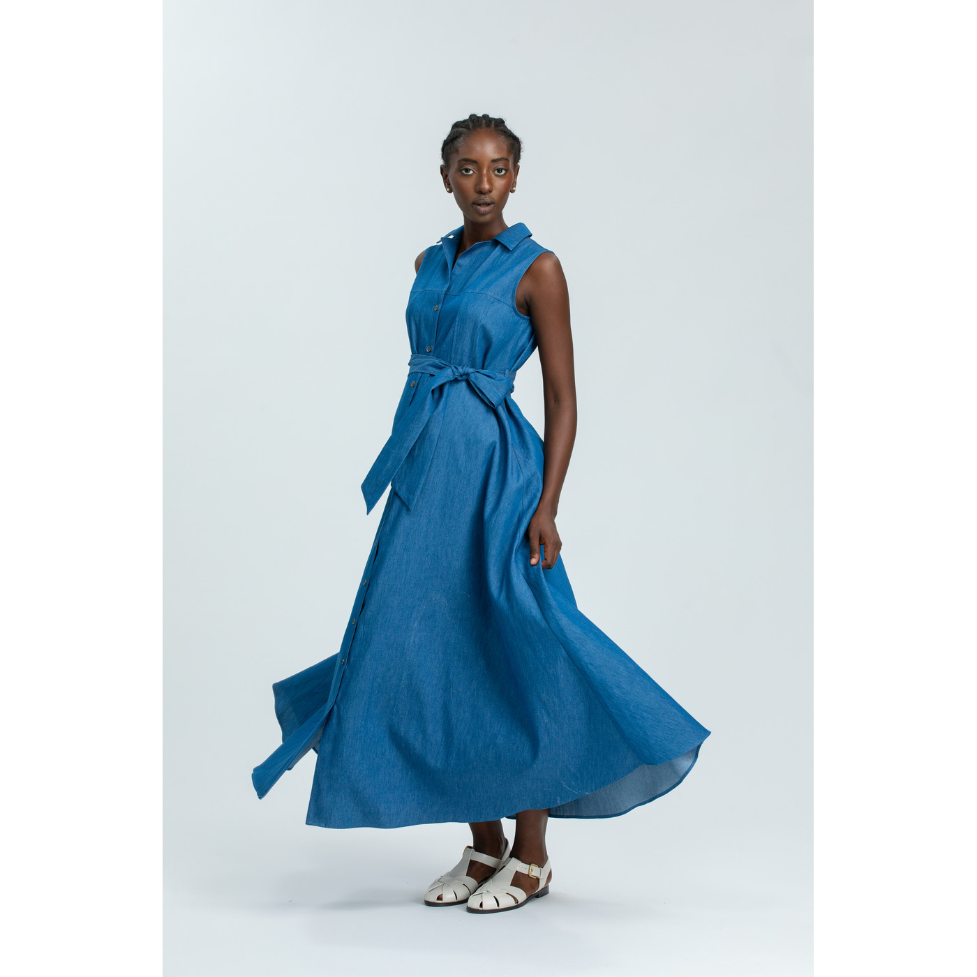 Deze mouwloze maxi-jurk van soepel denimlook materiaal is een tijdloze favoriet voor elke fase van je zwangerschap en daarna. De doorknoopsluiting en strikceintuur accentueren subtiel de taille en maken de jurk borstvoedingsvriendelijk. Dankzij het losvallende silhouet en de lichte stof is dit een comfortabele en elegante keuze voor warme dagen, van casual tot gekleed.