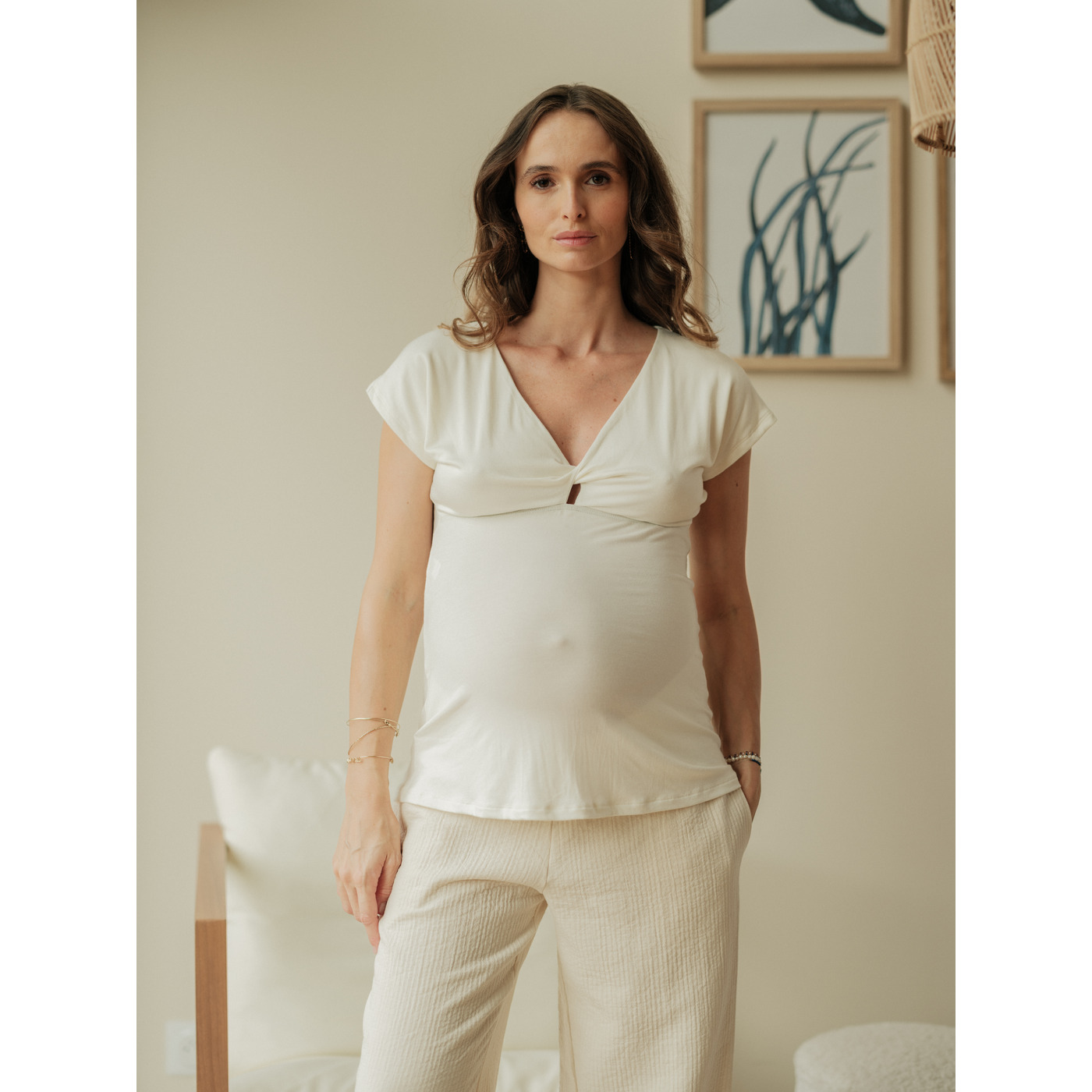 Word verliefd op de Célia top: een ultra-zachte, rekbare tweede huid die je lichaam comfortabel omarmt tijdens zwangerschap én borstvoeding.