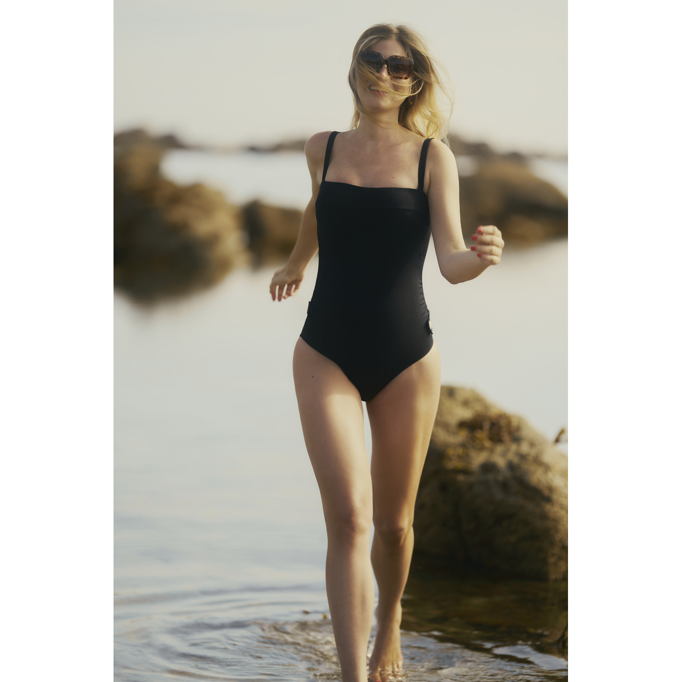 Het Lara Noir zwangerschapsbadpak straalt pure elegantie uit met een subtiele, avontuurlijke touch.