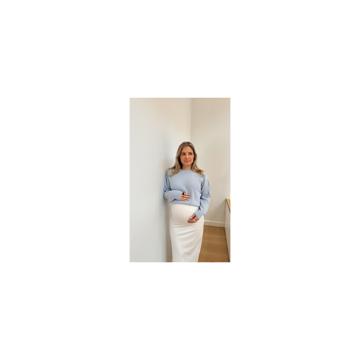 Kort & zacht truitje ideaal om op een hoge taille broek of rok te dragen of om te combineren met een jurkje en zo je bolle buik mooi te accentueren. Kan ook na de zwangerschap leuk worden doorgedragen.