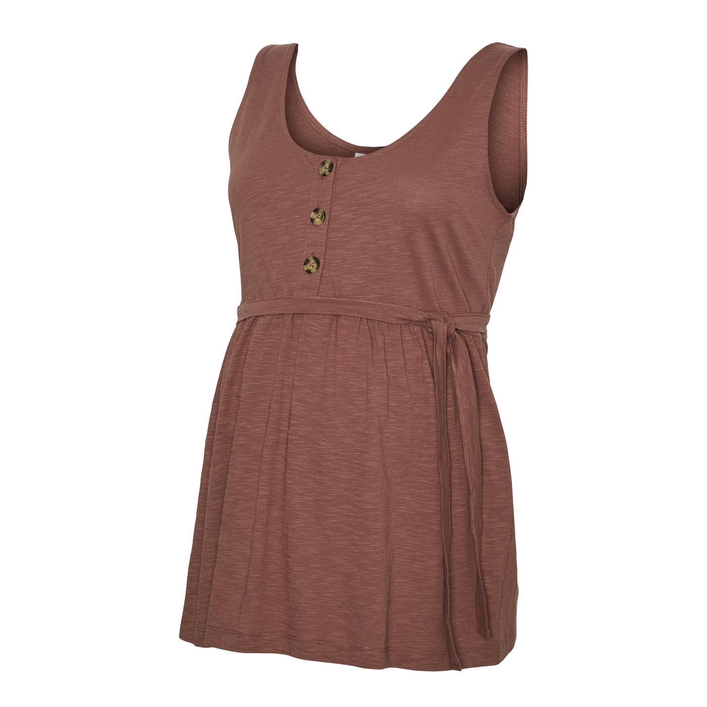 Geniet van de zomer in stijl met deze comfortabele en luchtige zwangerschapstanktop in de kleur Mahogany. Speciaal ontworpen om jouw groeiende buik optimaal te ondersteunen én je een frisse, zomerse look te geven.