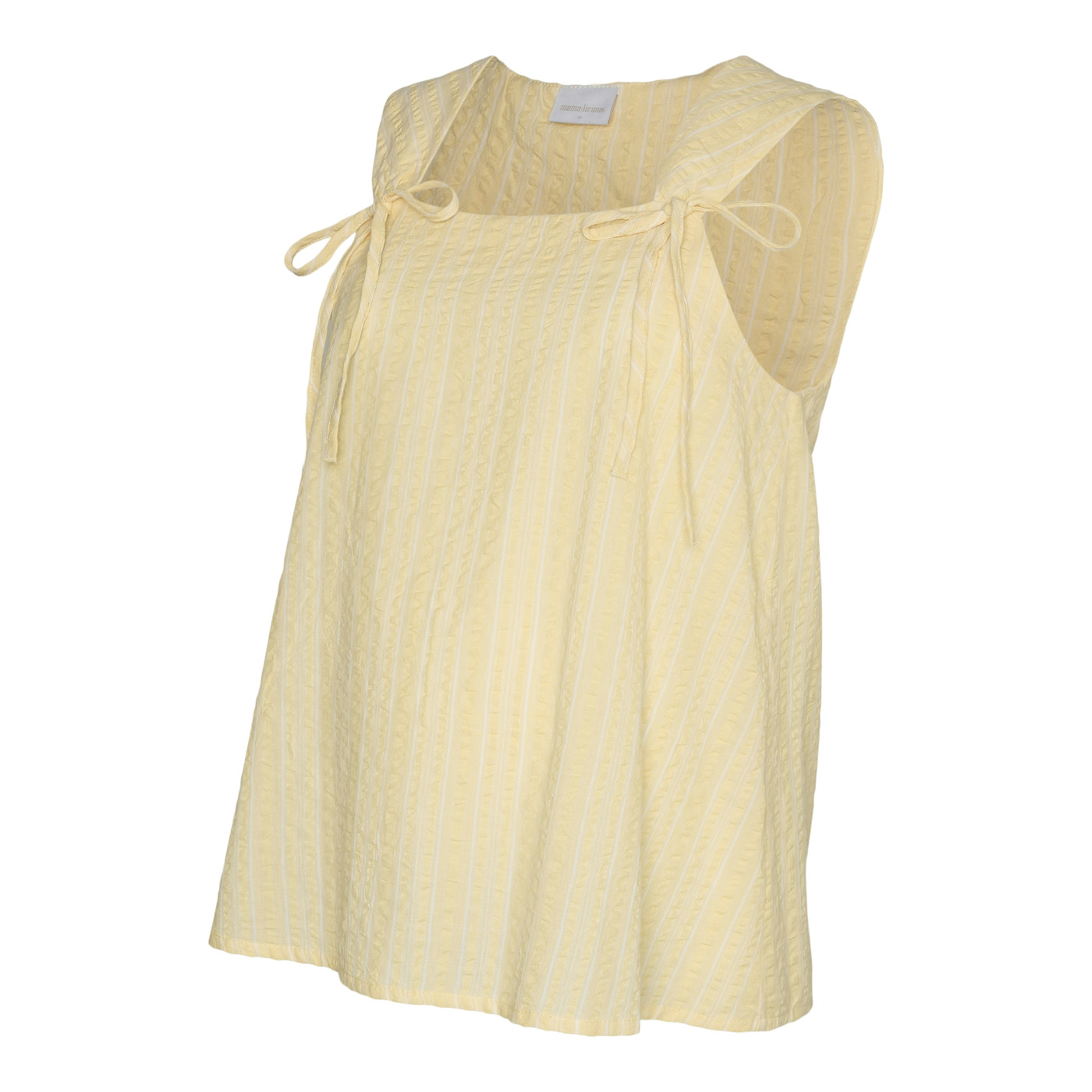 De subtiele strepen en verfijnde details, zoals de striksluiting en licht geplooide (verzamelde) accenten, geven de top een speelse en elegante touch.