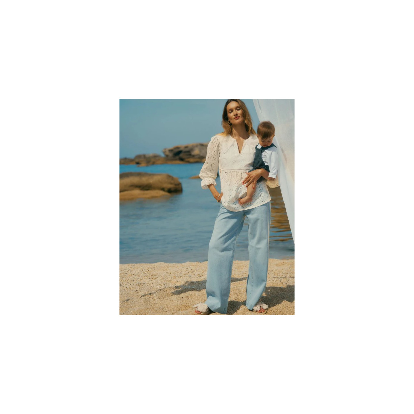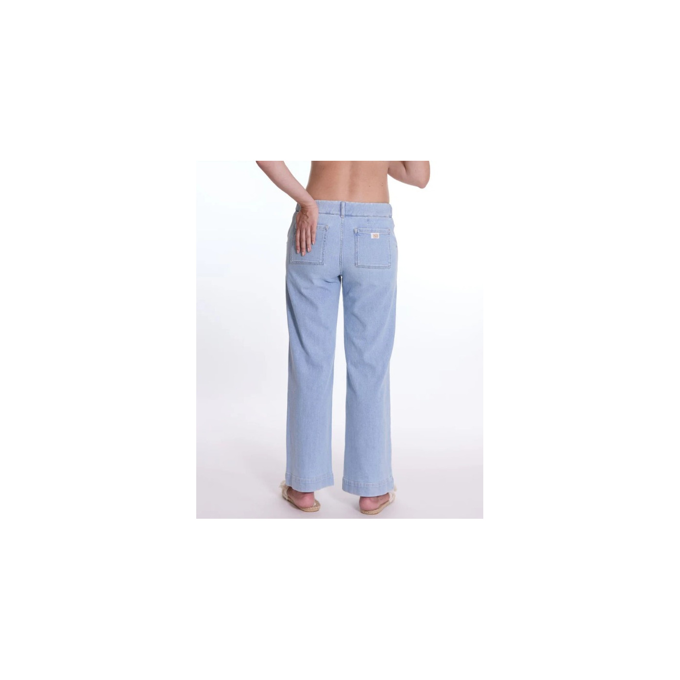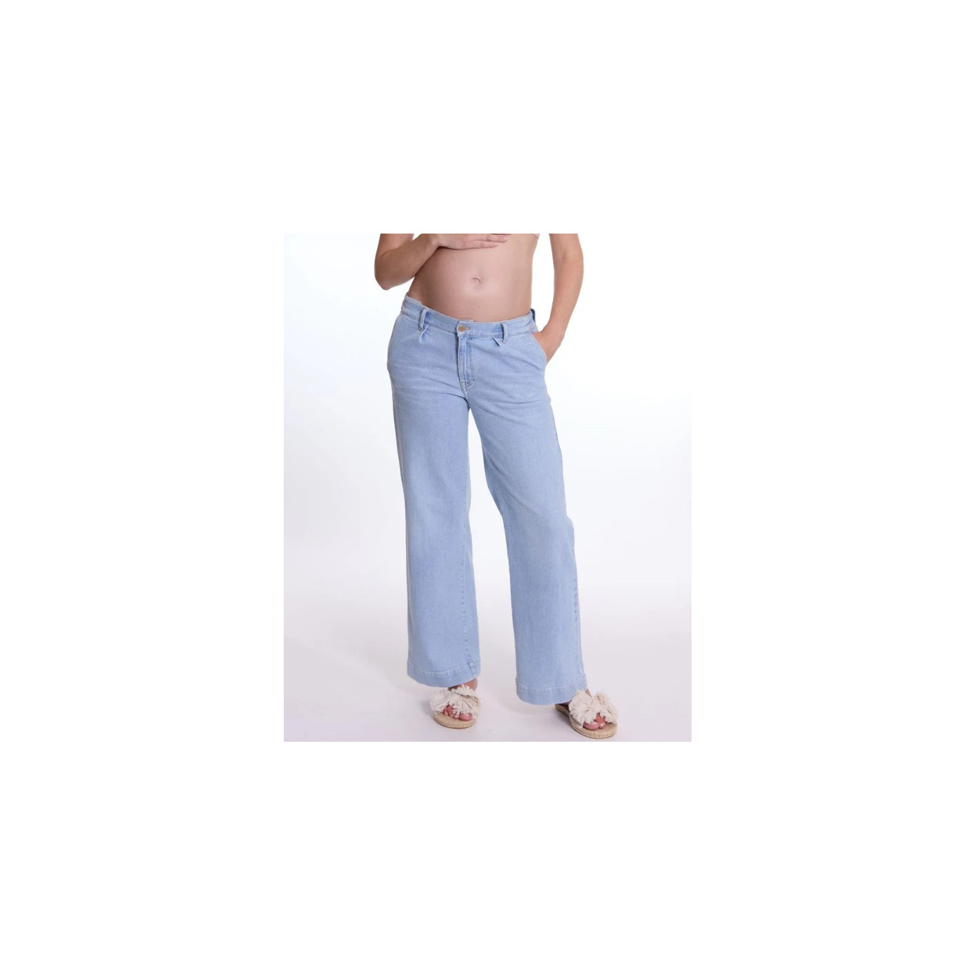 De Kelly Light Blue zwangerschapsjeans met wide leg pasvorm combineert moeiteloos stijl met eco-verantwoordelijkheid.